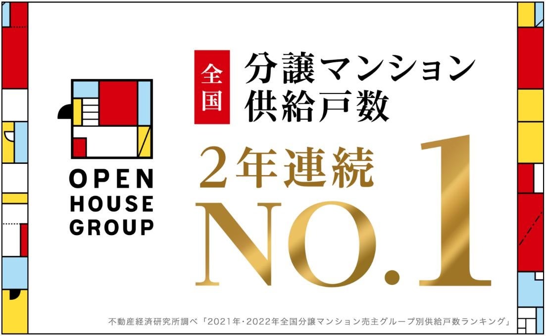 株式会社オープンハウスグループ(本社 東京都千代田区、代表取締役社長 荒井正昭、以下「当社」)は、当社グループが「2022年全国分譲マンション売主グループ別供給戸数ランキング※」において1位を獲得しましたことをお知らせいたします。この戸数は、2022年に株式会社オープンハウス・ディベロップメントと株式会社プレサンスコーポレーションが全国で販売したマンション戸数の合計となります。