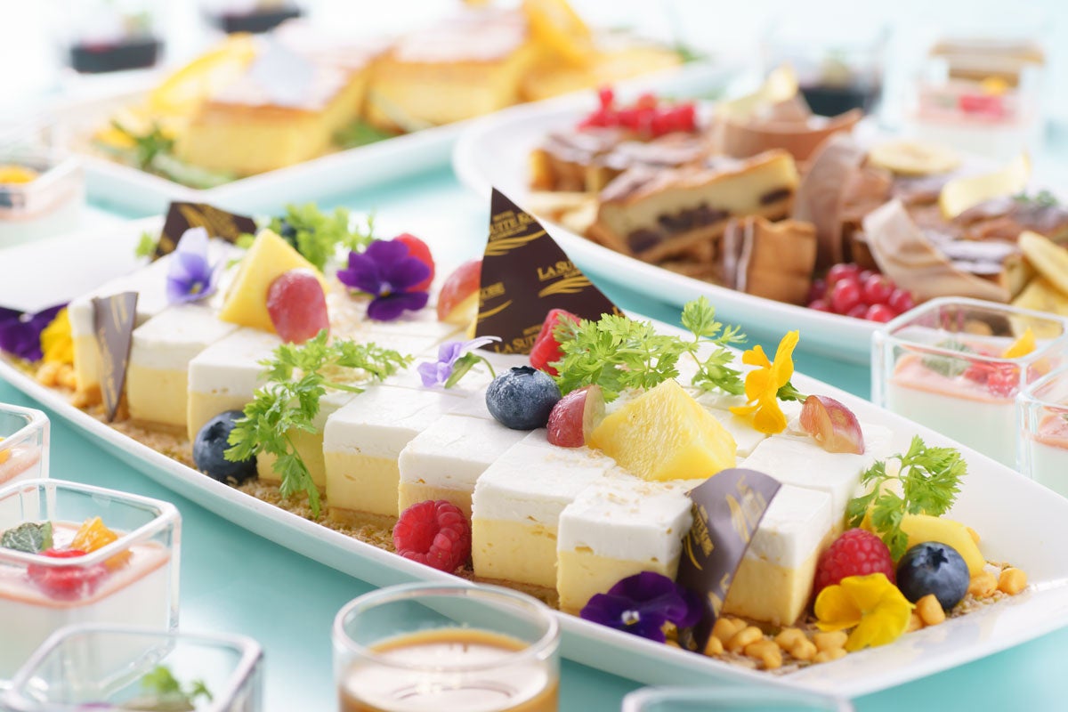 〇スイーツメニュー:ル・パン特製トロピカルフルーツとココナッツのムース、ジュレ ド レザン、淡路島ヨーグルトのパンナコッタ グァバのソース、デーツとチョコレートのバナナクラフティ、ケーク シトロン、マンゴーとパッションフルーツのジェラート など