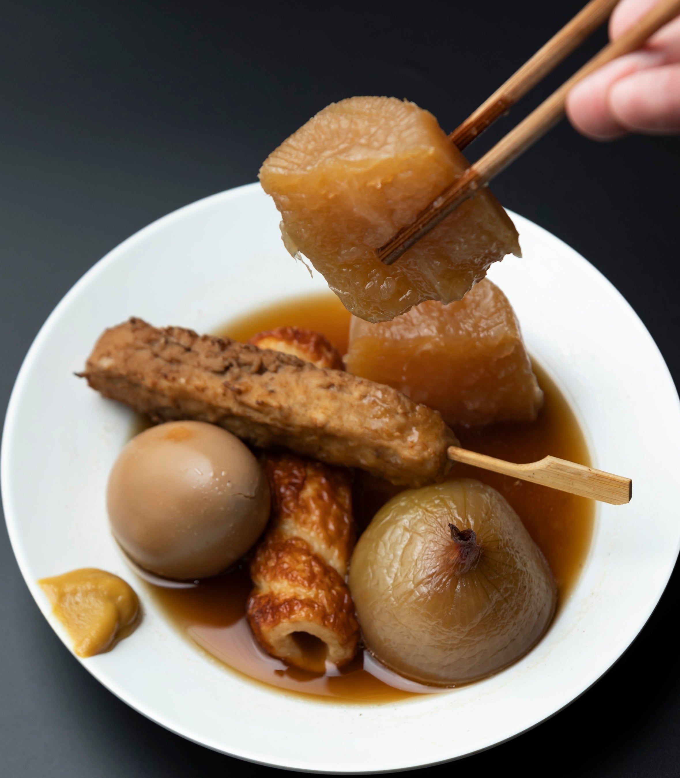 - 魚介の風味と特製醤油がきいたラーメンスープで作るおでん 5種盛り合わせ 900円