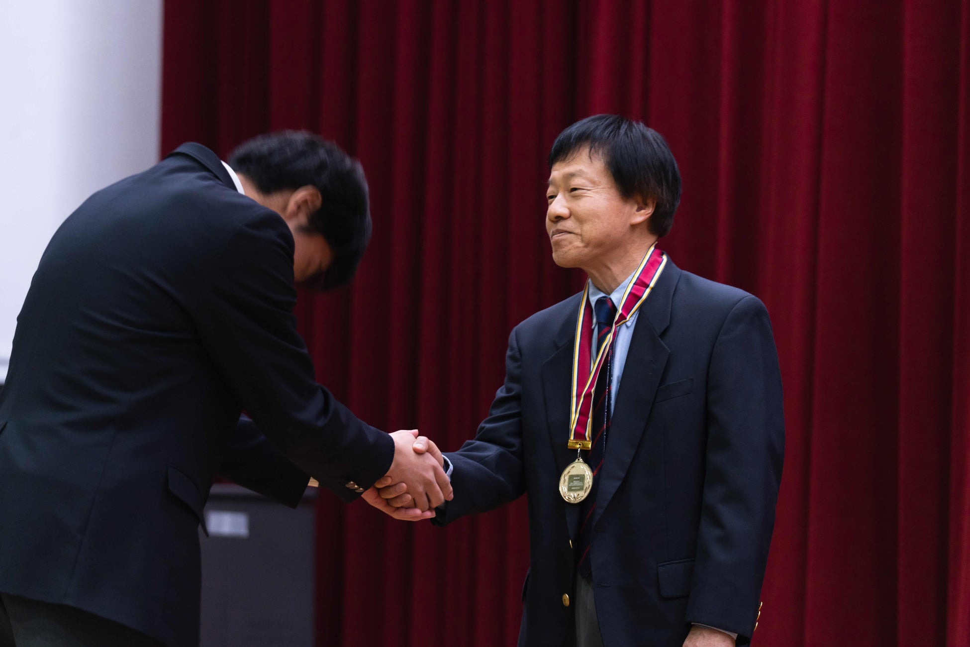 定年退職の先生には、神港学園の象徴「金メダル」贈呈も。