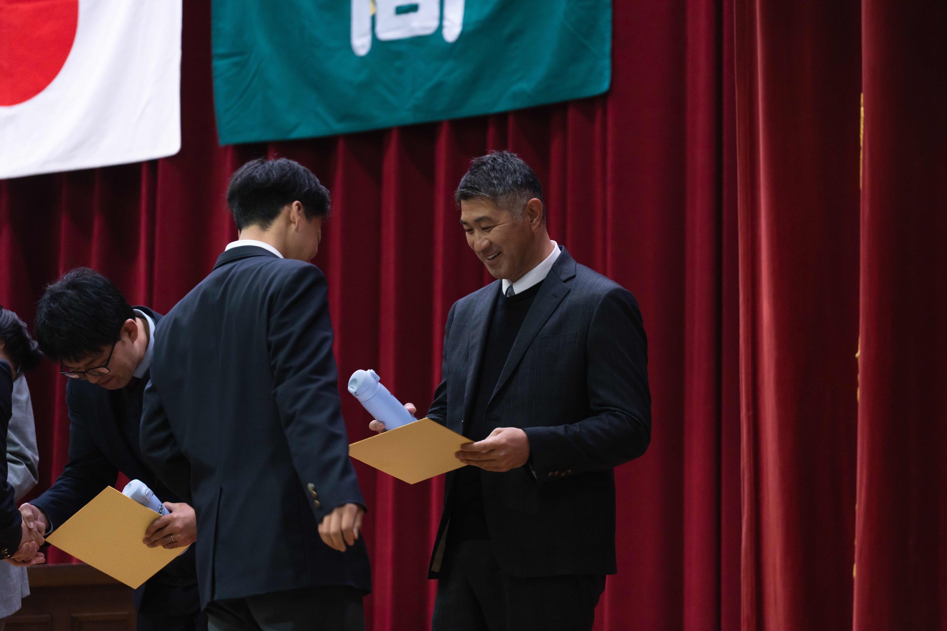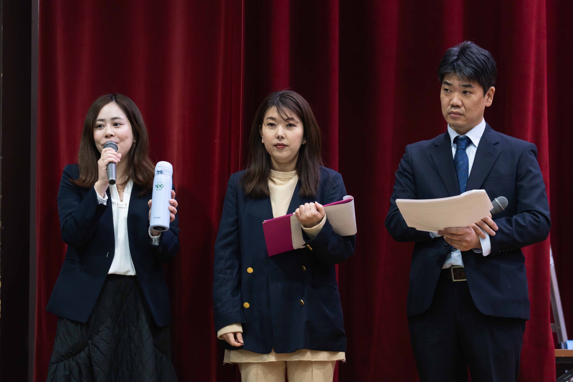 贈呈式の最後には、卒業生全員にオリジナルボトルを配布。卒業生からは「先生が色やデザインにもこだわってくれたこのボトルを、次のステージでも使っていきたいです。」「これを見て学生生活を思い出すと思います。」という声もいただきました。こうして本サプライズ企画は大成功に終えました。