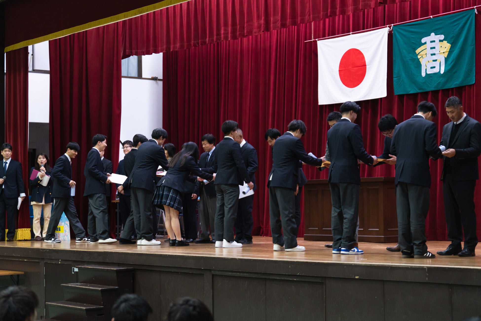 当日は、神港学園高等学校のダンス部よりパフォーマンスを披露いただいたのち、毎年恒例の卒業生思い出ムービーの上映がスタート。その後、本キャンペーンの応募者である学年主任の先生が司会を務め、卒業生への祝福のコメントと共に、今回の企画について発表を行いました。