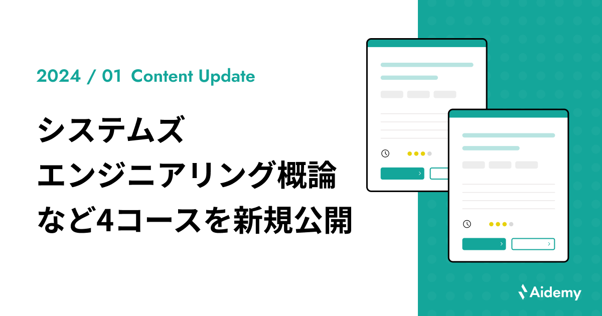 2024年1月は、DXを含めたプロジェクト推進に有用な「複雑さに対応するためのシステムズエンジニアリング概論」や「未知の課題に立ち向かう:課題設定力向上のすすめ」など、全4コースをリリースいたしました。
