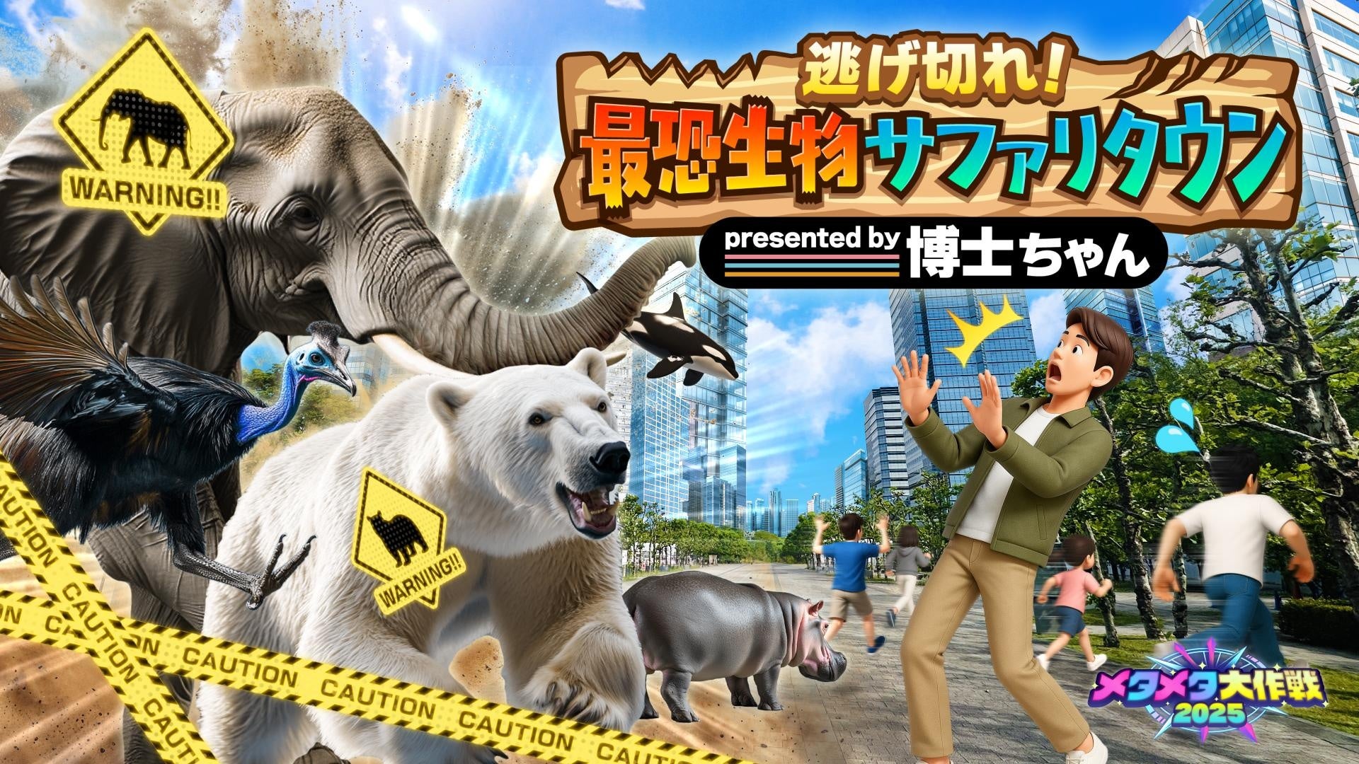 この夏、新時代の学び体験!未来の文化祭「メタメタ大作戦2025 -遊びが学びに変わる夏-」7月19日(土)から毎日開催!!「博士ちゃん」コラボのVRゲームが登場!!ゾウ、シャチ…巨大生物から逃げ切れ!