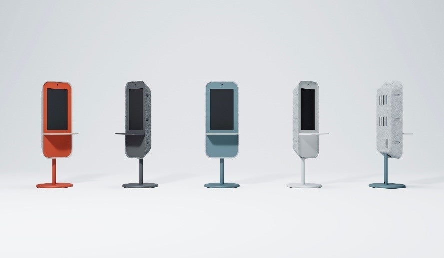 オフィスのリフレッシュエリアや作業エリアなど様々な場に点在できるようシンプルにしつつ、人が集まりやすいようバス停をモチーフとした象徴的なデザインにしました。心地よく接することができるよう、機器類を筐体内に内包し、親しみやすい印象を与えるよう配慮しました。