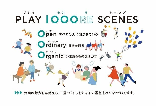 事業コンセプトPLAY 1OOORE SCENES (プレイ 「センリ」 シーンズ)をもとに、人と人とが繋がり、地域住民が公園づくりに参加でき(Open)、地域住民の日常生活に寄り添った、毎日足を運びたくなるような公園をめざし(Ordinary)、豊かな自然をそのままに、いまあるものを活用した(Organic)施設を設置、運営します。