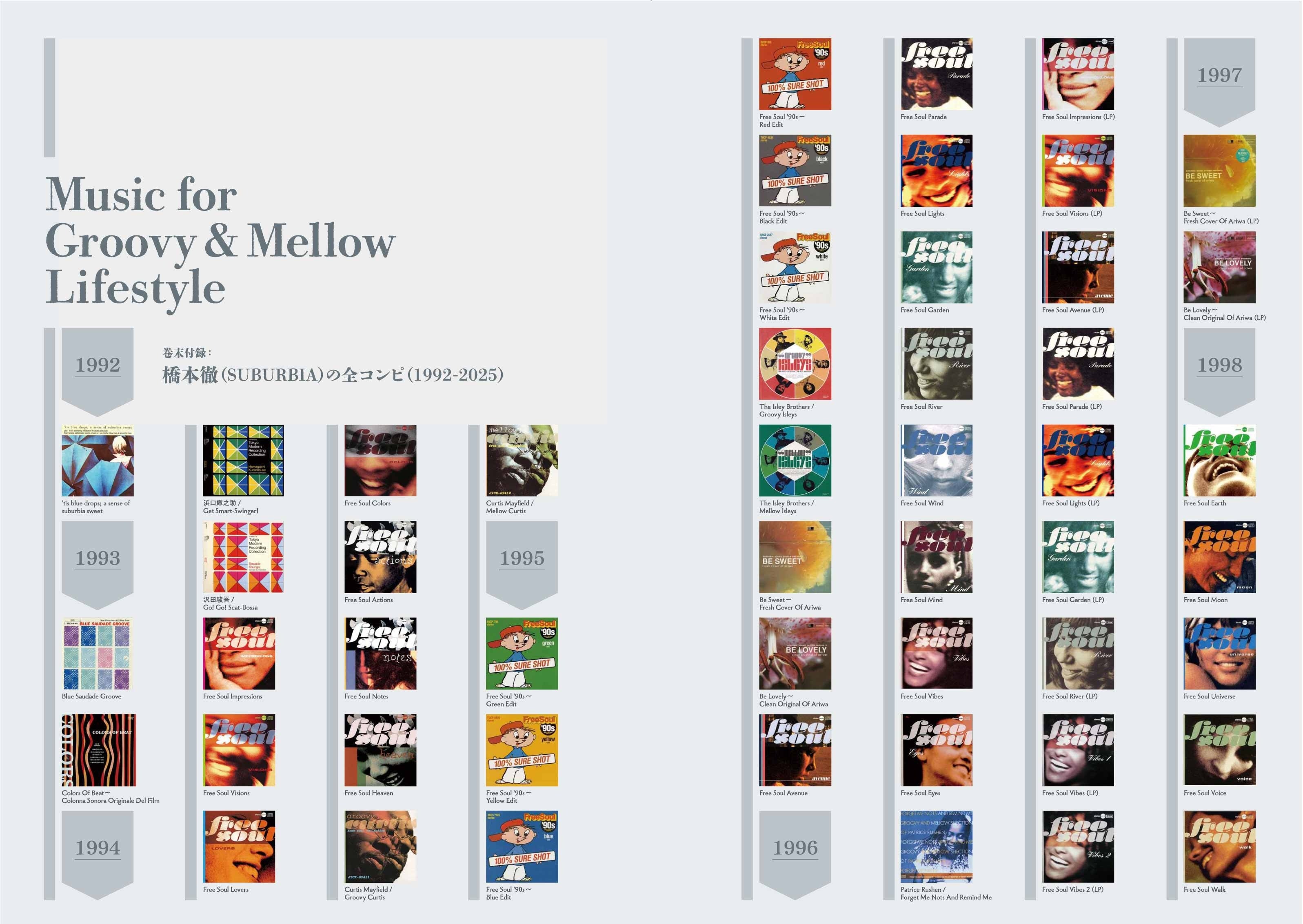 巻末には、橋本徹(SUBURBIA)が1992年から2025年までに手がけた、世界一の数となる383枚におよぶ「全コンピ完全網羅リスト」を掲載! 熱狂的なファンやレコード・マニアにとって、これだけでも買う理由になる圧倒的に充実した資料的価値。