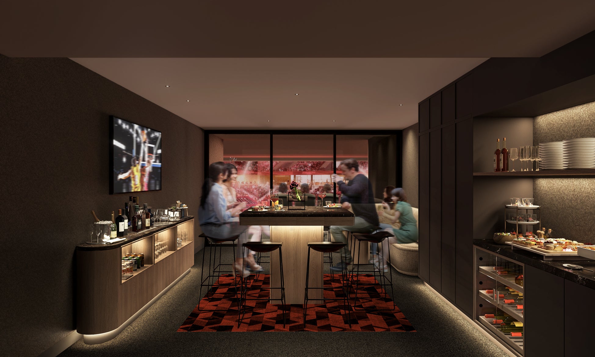 観戦席とバースタイルのラウンジを自由に行き来できる、新しい観戦スタイルをお楽しみいただけます。