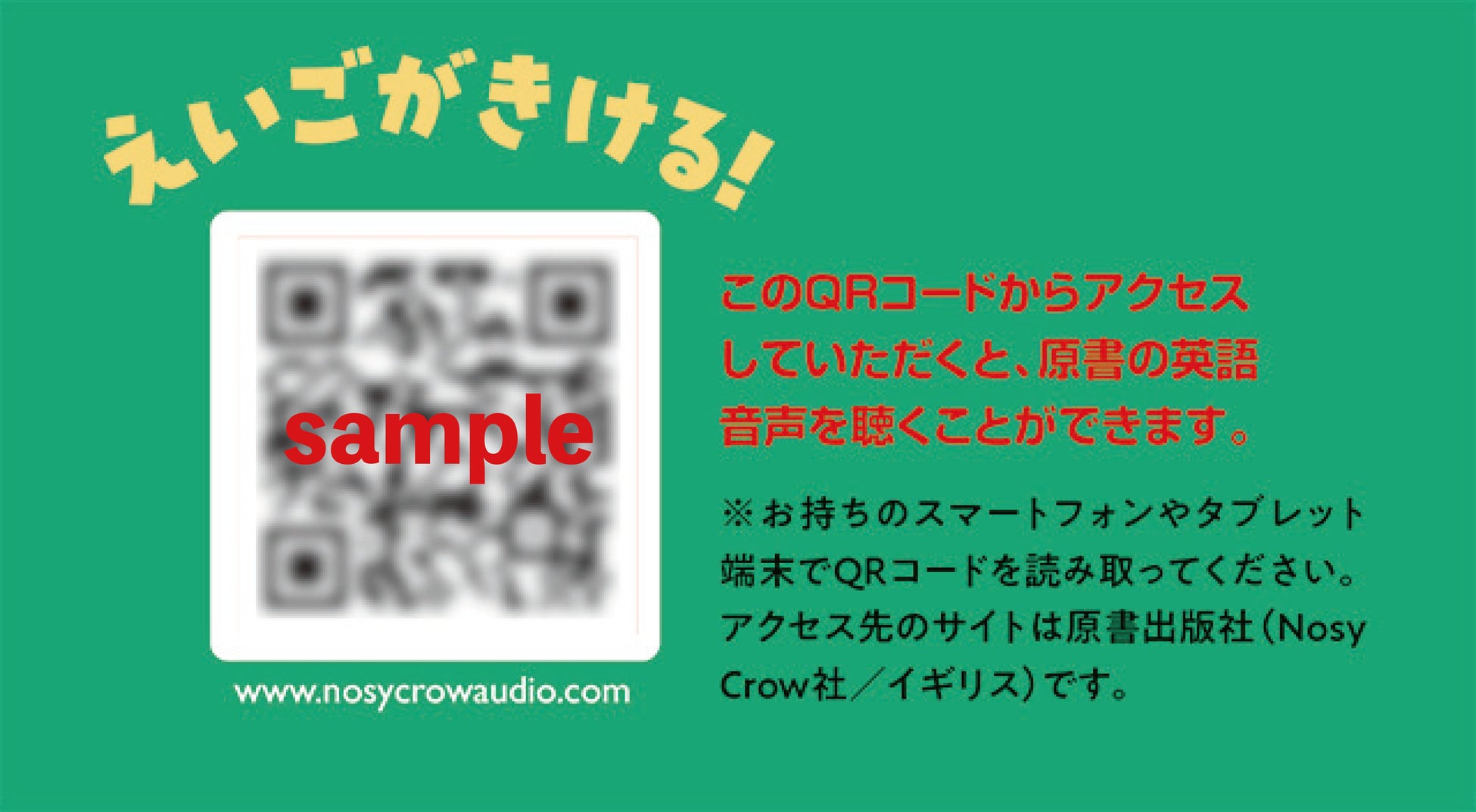 さらに、裏表紙に載っているQRコードを読み取ると、原書の英語音声をきくことができるので、英語の発音に不安がある方でも安心して読むことができます。
