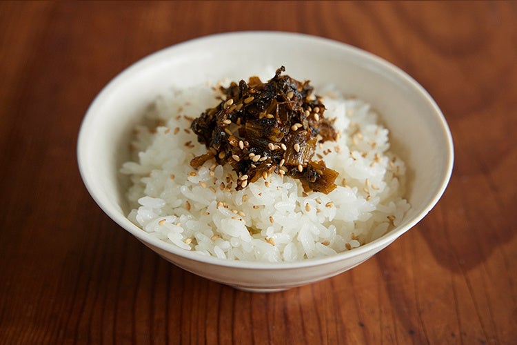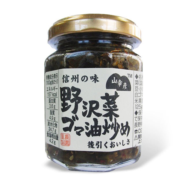 信州でなじみの味。柔らかな野沢菜を刻み、唐辛子でピリ辛に仕上げ、さらに香りでゴマ油をプラス。後引くおいしさです。卵焼きや炒飯に加えても。