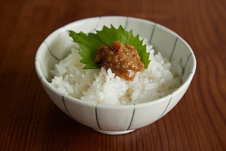 【紫蘇と合わせて】 麦糀と香り高い生醤油のバランスの整った味わいに、紫蘇の香りが相性抜群。