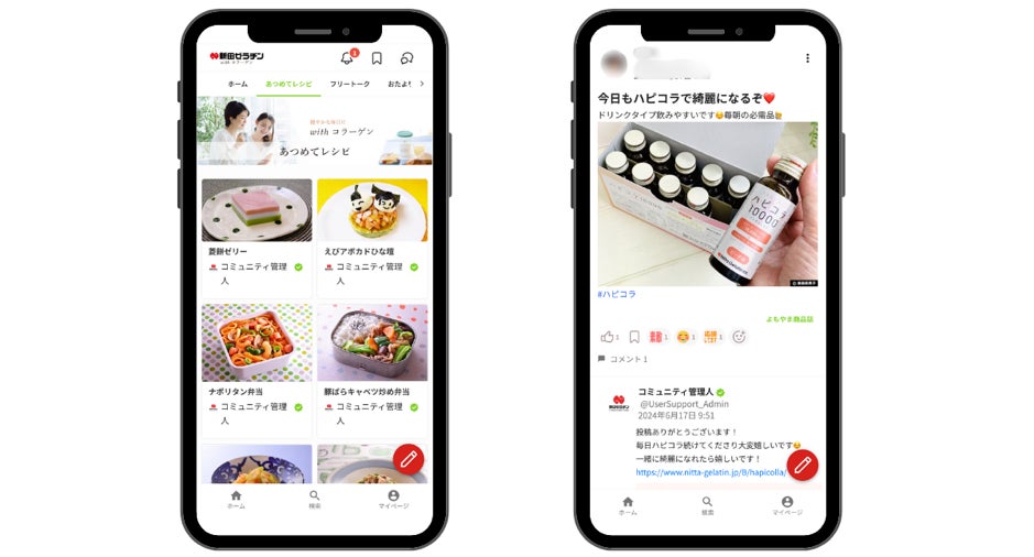 くらしや健康にまつわるお役立ち情報やコラーゲンに関する知識を深められるコンテンツや、商品を使ったアレンジレシピやトッピングなどのアイデアのほか、ちょっとした気付きの投稿や、商品の使用感や要望を伝える場としてもご活用いただけます。