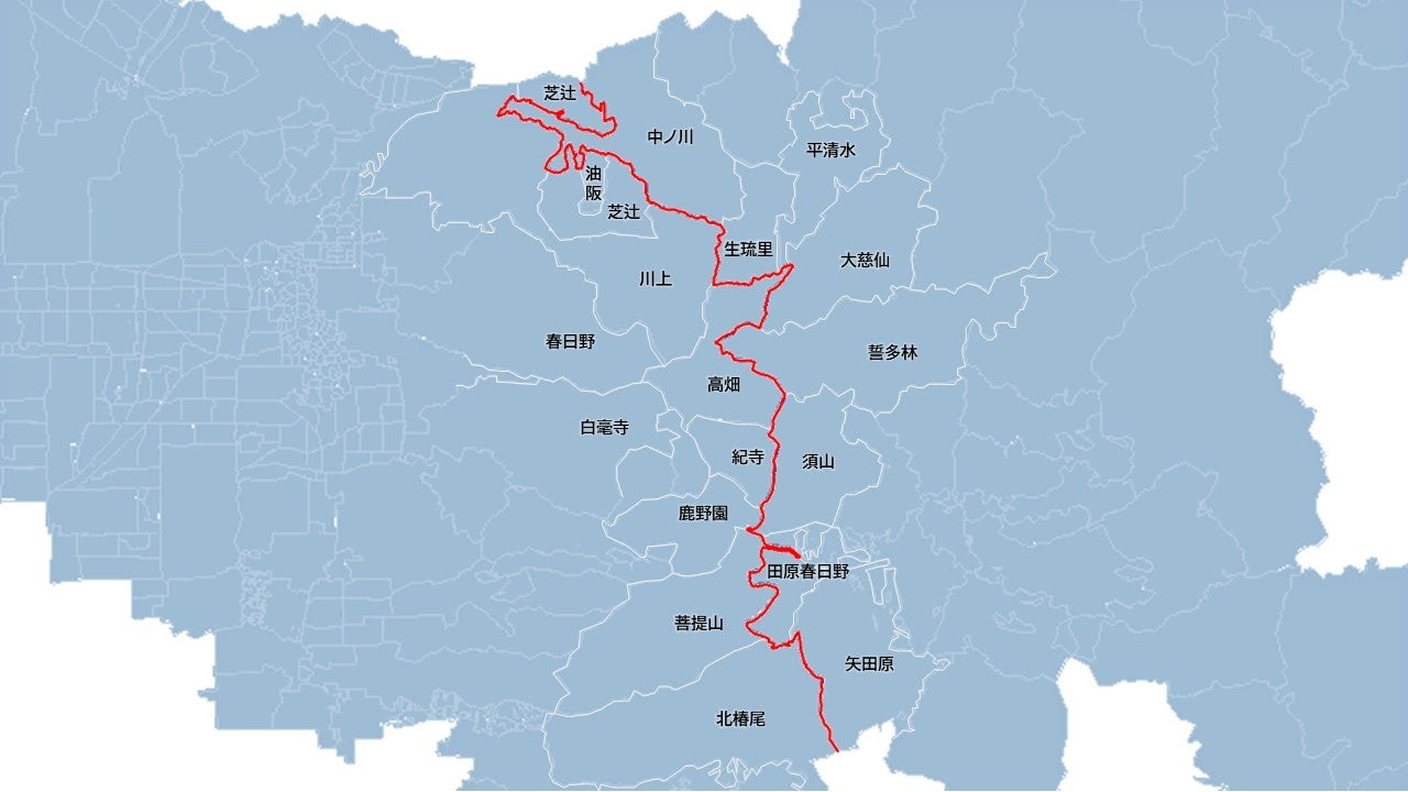 原則として、町名を分断しないという気象庁の方針が示されたこと、また、気象警報等が発表され、奈良市から避難に関する情報を伝達する場合、最小単位を原則として町名とするため、境界線は町界を基準としています。