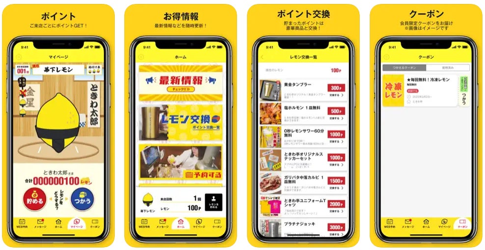 リニューアルで楽しさもお得感もバージョンアップした『ときわ亭』公式アプリ。これまで36万人以上の方にダウンロード・ご利用いただいています。アプリ会員は「0秒レモンサワートッピング 冷凍レモン」がいつでも無料。来店ごとにポイントが貯まり、ポイント数に応じて「前頭レモン」「関脇レモン」といった具合にランクアップします。貯まったポイントはお好きなタイミングでお好きな特典と交換が可能。その他、誕生日・記念日のプレゼントや、アプリ会員限定のキャンペーンやイベントも見逃せません。アプリ会員になれば、行けば行くほど『ときわ亭』が楽しくなります。ご来店前にぜひダウンロード・登録がおすすめです。