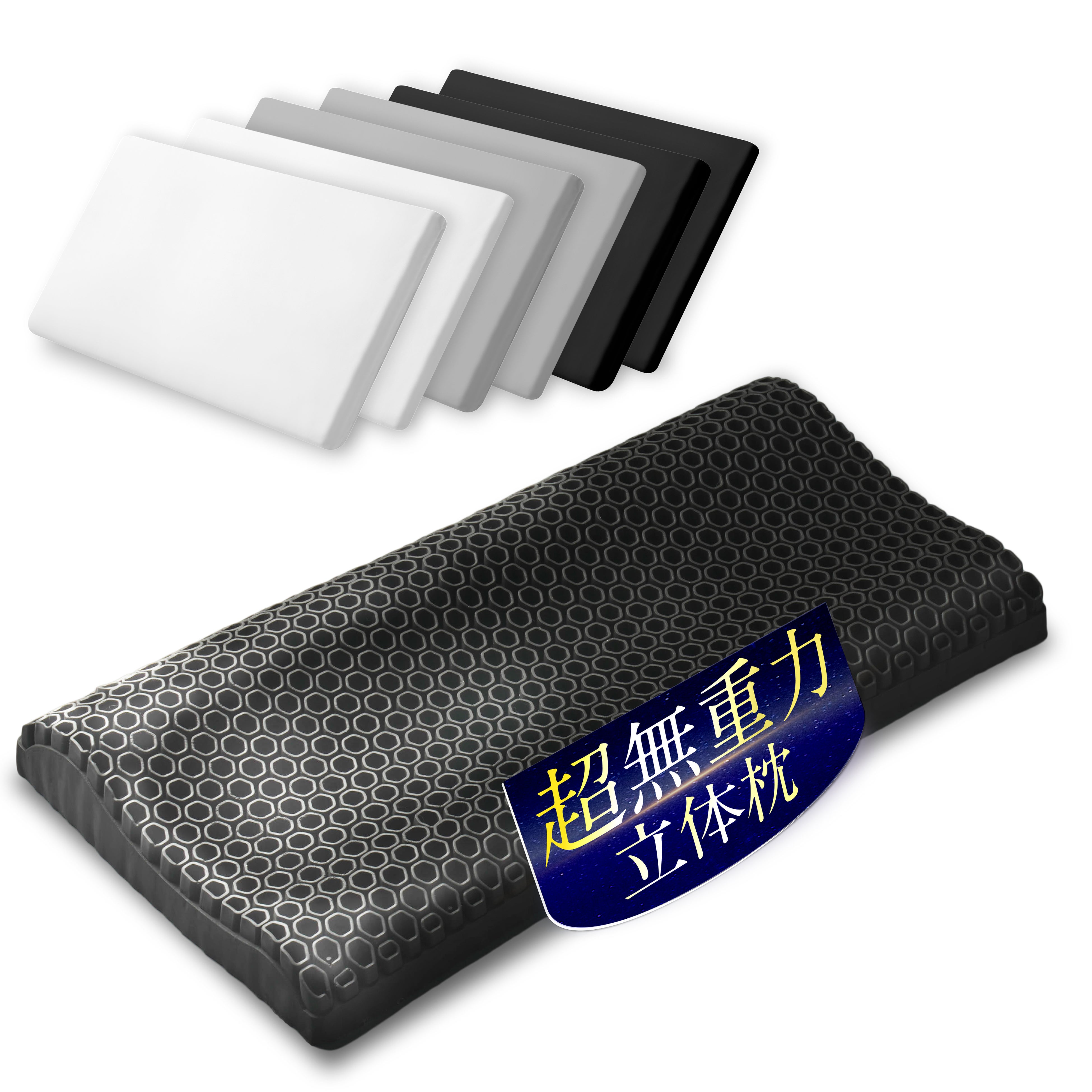 約610個の3Dハニカム構造ジェルが頭部を全方位から優しく包み込み、まるで無重力空間にいるかのような独特の浮遊感で頭圧を分散する高機能枕です。低反発・高弾性・高反発の調整シートを組み合わせて硬さや高さを1cm単位でカスタマイズできるため、自分にぴったりの寝心地をつくれます。通気性と耐久性に優れた素材採用でムレにくく清潔さもキープし、首や肩への負担を軽減しながら理想的な眠りをサポートします。