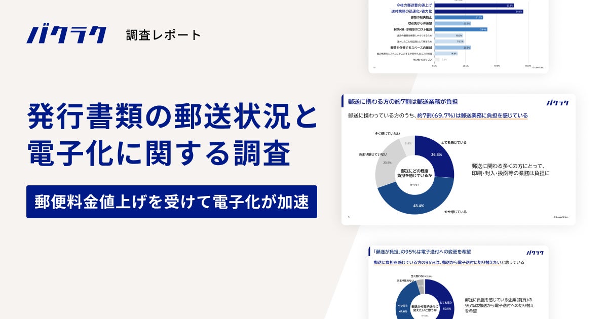 すべての経済活動のデジタル化を目指す株式会社LayerXは、法人支出管理サービス「バクラク」において、2024年秋ごろの改定が見込まれる郵便料金の値上げに先駆けて、書類の郵送を定期的に行っている会社員1,080名を対象に、「郵便料金値上げに関する調査」を実施しました。