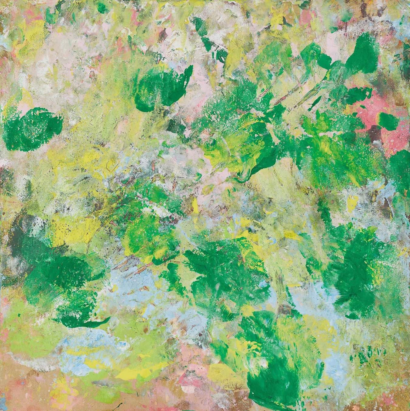 始まりは、両手に絵の具をたくさん付けること。そしてキャンパスに向かって大きく指を広げて叩くように描いていく。音楽が大好きでリズム良く音楽が聞こえてくると、全身でのりながら描いている様子はまるでドラマーの様。出来上がった絵からは沢山の音が聞こえてきそうだ。