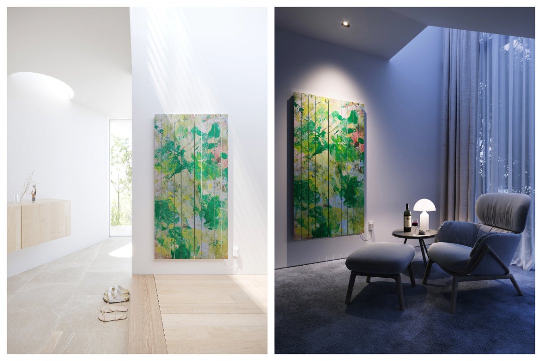 弊社には岩手の八幡平の森に工場があるのですが、盛岡本社のヘラルボニーさんの活動を知り、エネルギーを感じられるアート作品を弊社の電気ヒータに反映できないかと考えたことがきっかけでした。ピーエスが取り組む人が健康的に活動する「室内気候空間」の創造。「MEBUKI」は室内で1日の変化、季節の変化を熱とアートのエネルギーを通して感じていただける、バイタリティ溢れる製品です。多くの皆様に「MEBUKI」と共に室内で豊かな時間を過ごしていただければと思っています。