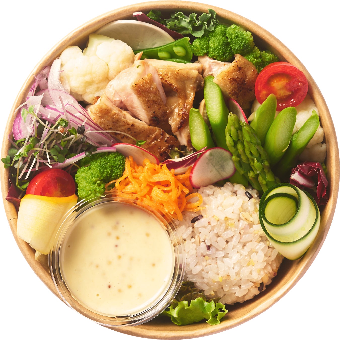 名古屋で人気のカスタムボウル専門店MOLNODA監修のもと、使用する野菜の数や内容、ドレッシングを開発。思わず手に取りたくなるようなビジュアルやテイクアウト容器など、細部にまで試行錯誤を重ねたこだわりのメニューの数々をご用意しました。