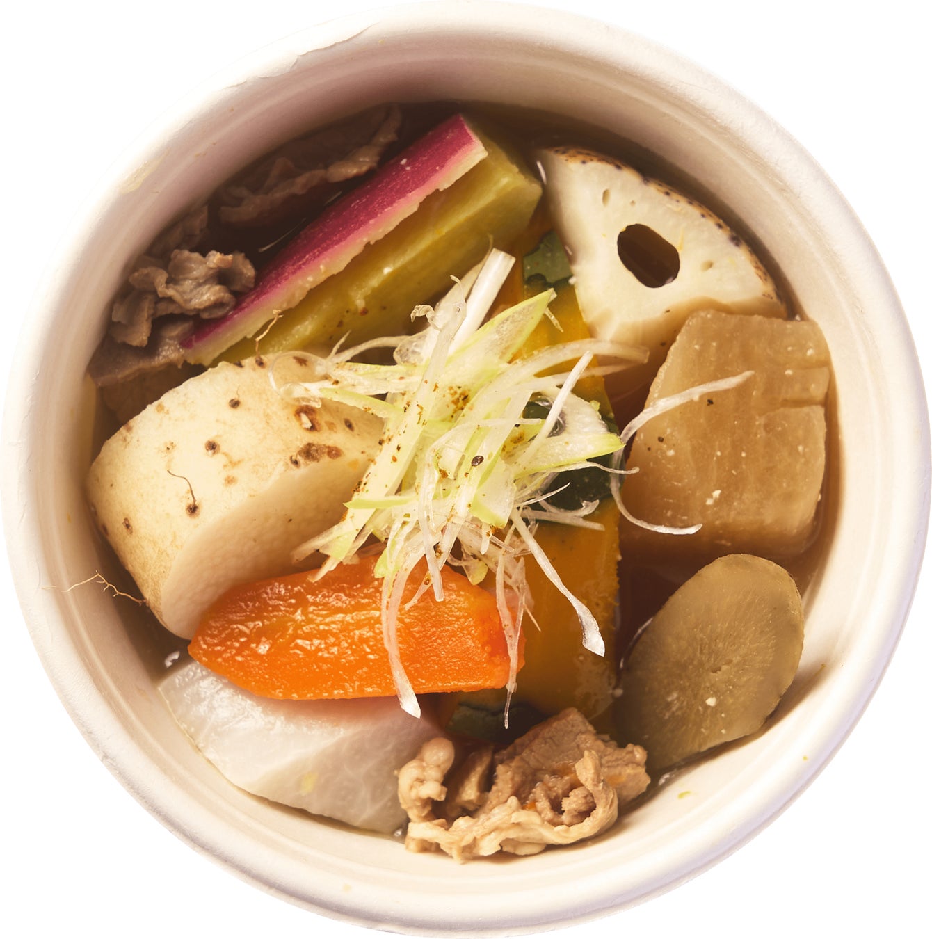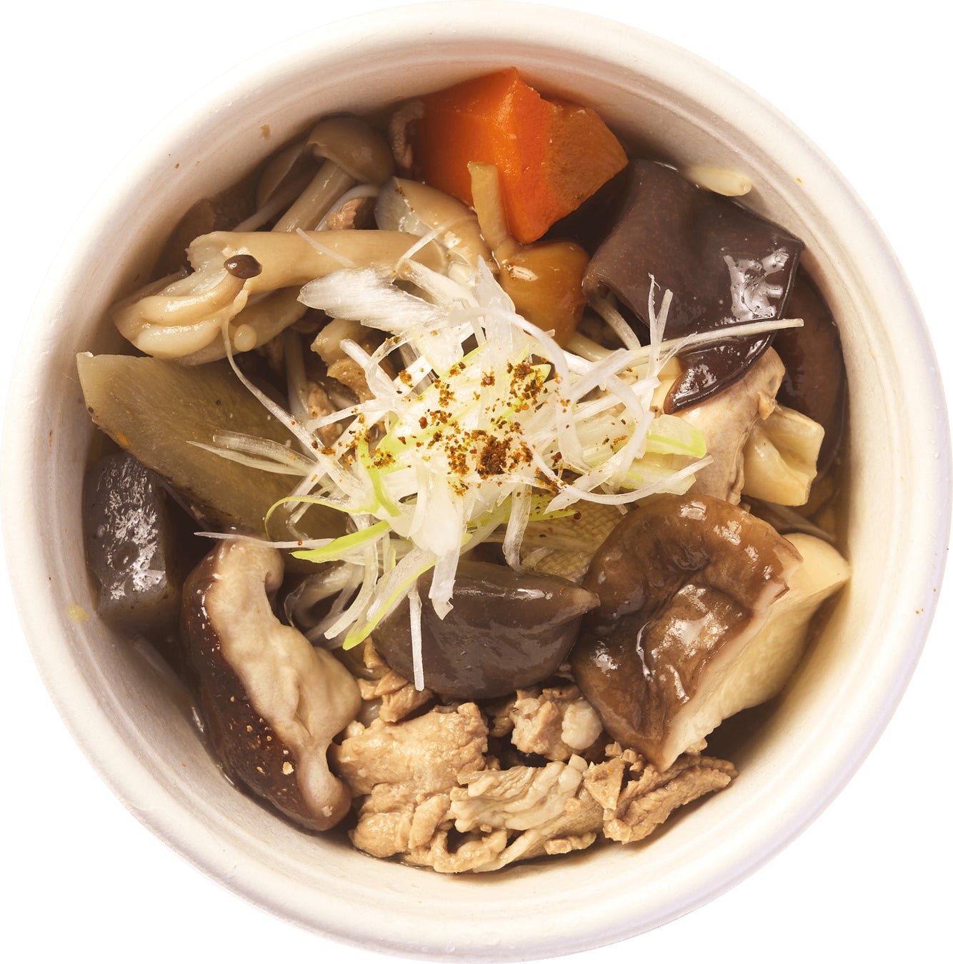 豚汁は2種類を用意。それぞれ8種の根菜やきのこを存分に使っており、豚汁だけでも満足度が高いボリュームになっており、これからの季節にぴったりです。