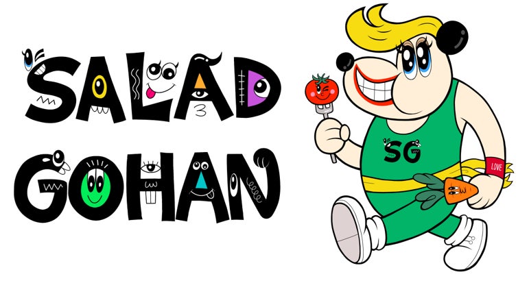 サラダごはんのロゴとキャラクターを手掛けたのは、愛知県出身でテレビ番組の企画をきっかけにさまざまな分野で活躍中の青山哲士。