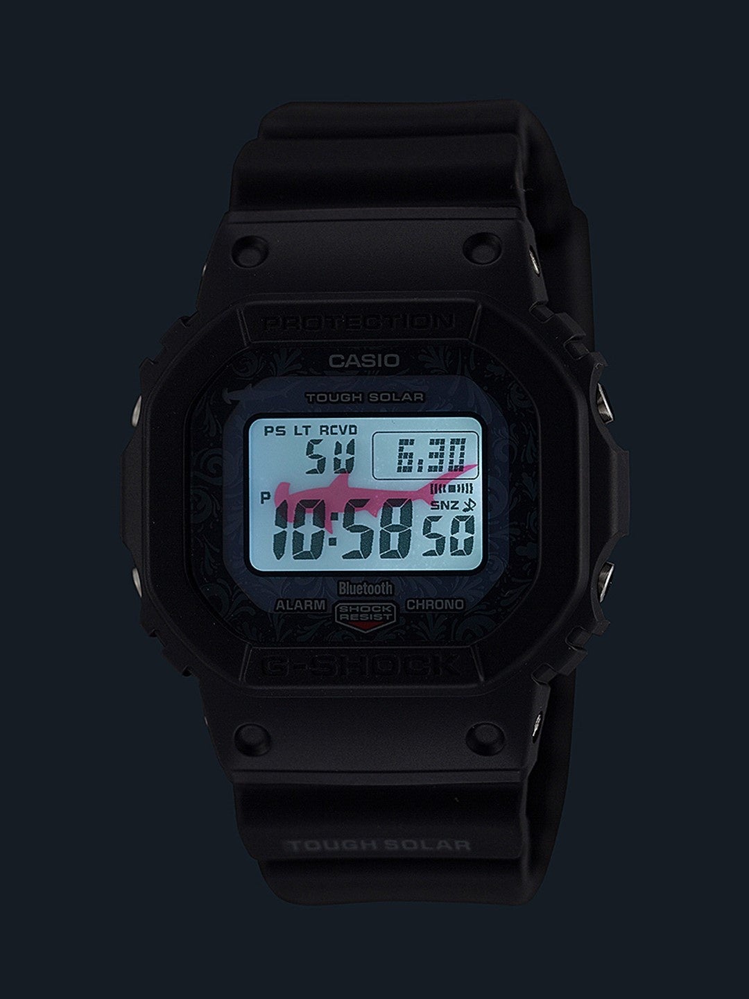 『GW-B5600CD-1A2』はハンマーヘッドシャークと海を、『GW-B5600CD-1A3』はダーウィンフィンチとその生息地の一つであるスカレシアの森、『GW-B5600CD-9』はガラパゴスゾウガメとその生息地の一つである岩場を、それぞれフェイスに施しました。バックライト点灯時には、生物のシルエットが浮かび上がります。