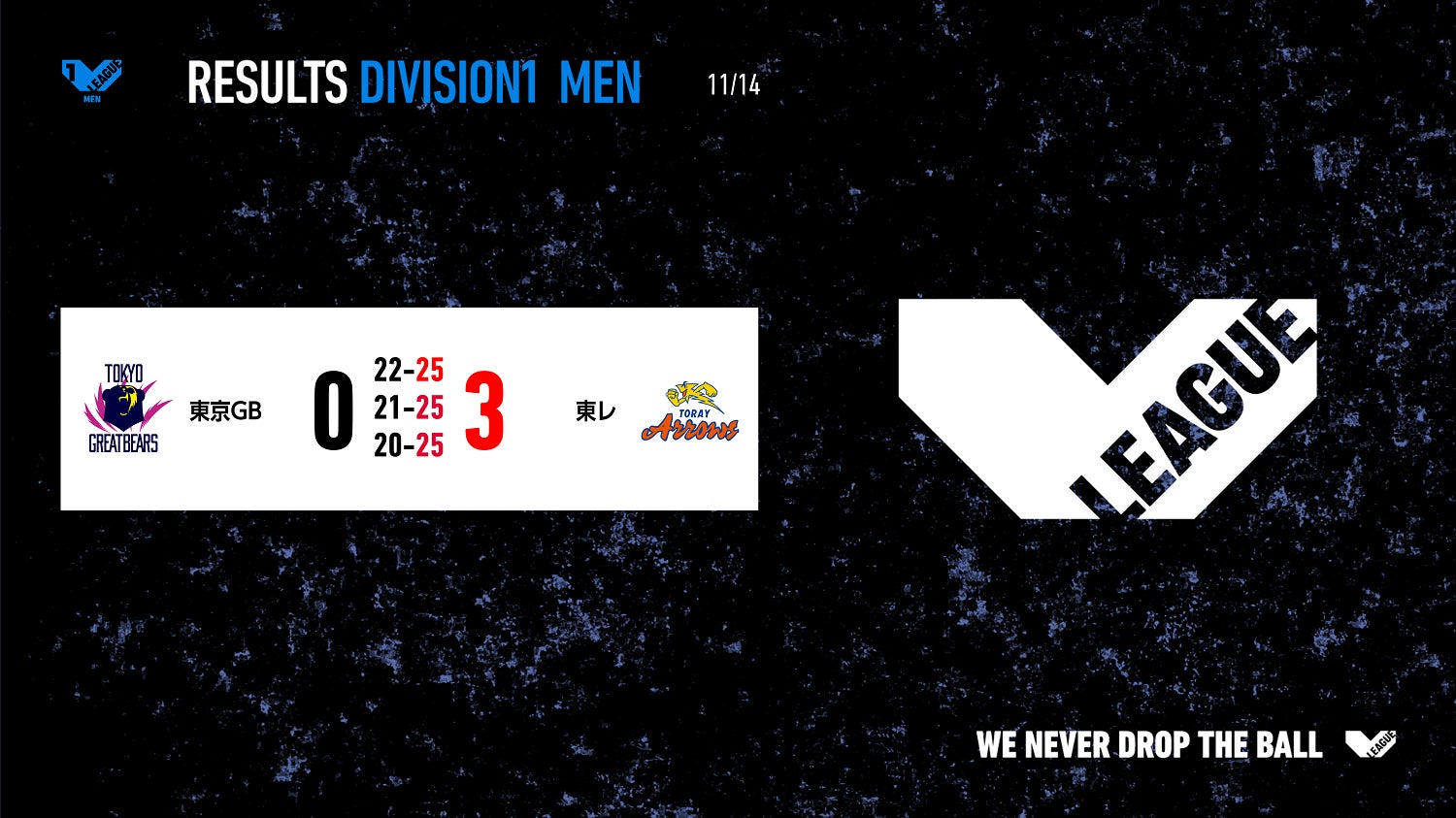 [バレー/Vリーグ】V1男子・東京での月曜日ナイトゲームは東レアローズが東京グレートベアーズを制す