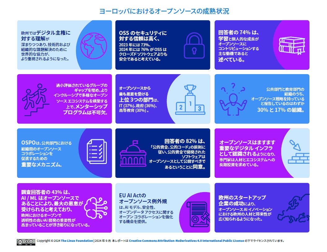 Linux Foundation Research (LF Research) のレポート「Open Source Maturity in Europe」の日本語版「ヨーロッパにおけるオープンソースの成熟状況」が公開されました。