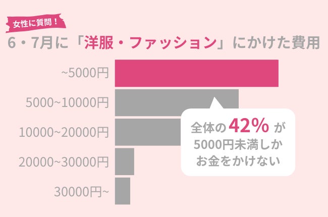 調査の結果、今年の6・7月で『洋服・ファッション』にかけた費用は5000円未満の方が最も多いことがわかりました。