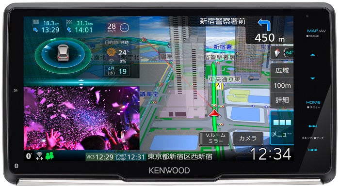 今回発売する2モデルはドライバーの安心・安全な運転をサポートする機能として「音声操作」に対応し、ハンドルから手を離さず、ドライブ中に便利なナビ機能やエンターテインメント機能を声で操作することが可能です。また、ドライブを快適にするナビ機能としては、道路事情や運転速度に応じた到着時刻が予想しやすくなる「平均車速設定」や、駐車場/ドライブスルーがある施設を検索できる「POIジャンル付帯設備検索」、さらに環境に配慮したガソリンスタンドを探せる「大気環境配慮型SS(e→AS)表示」にも対応しています。
