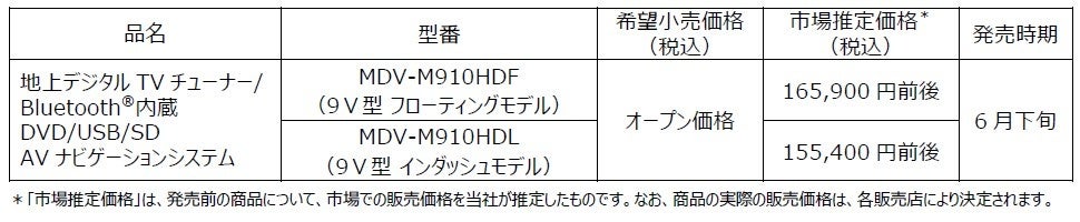 AVナビゲーションシステム“彩速ナビ”「MDV-M910HDF」「MDV-M910HDL」を発売