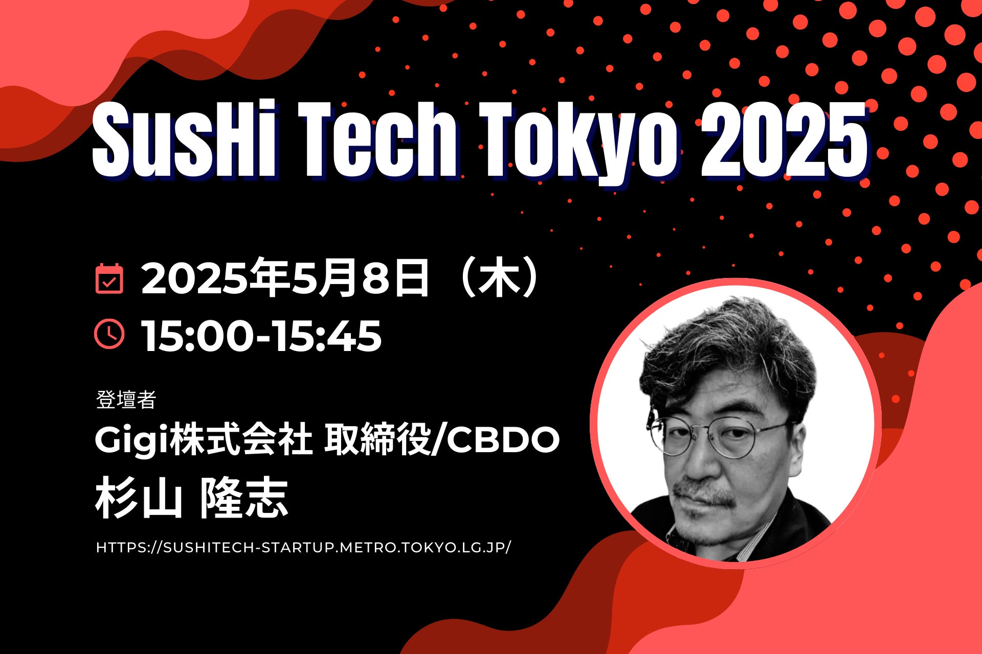 Gigi株式会社(代表取締役:今井了介、所在地:東京都港区)は、取締役/CBDO 杉山 隆志が2025年5月8日(木)に開催される「SusHi Tech Tokyo 2025」に登壇することをお知らせいたします。