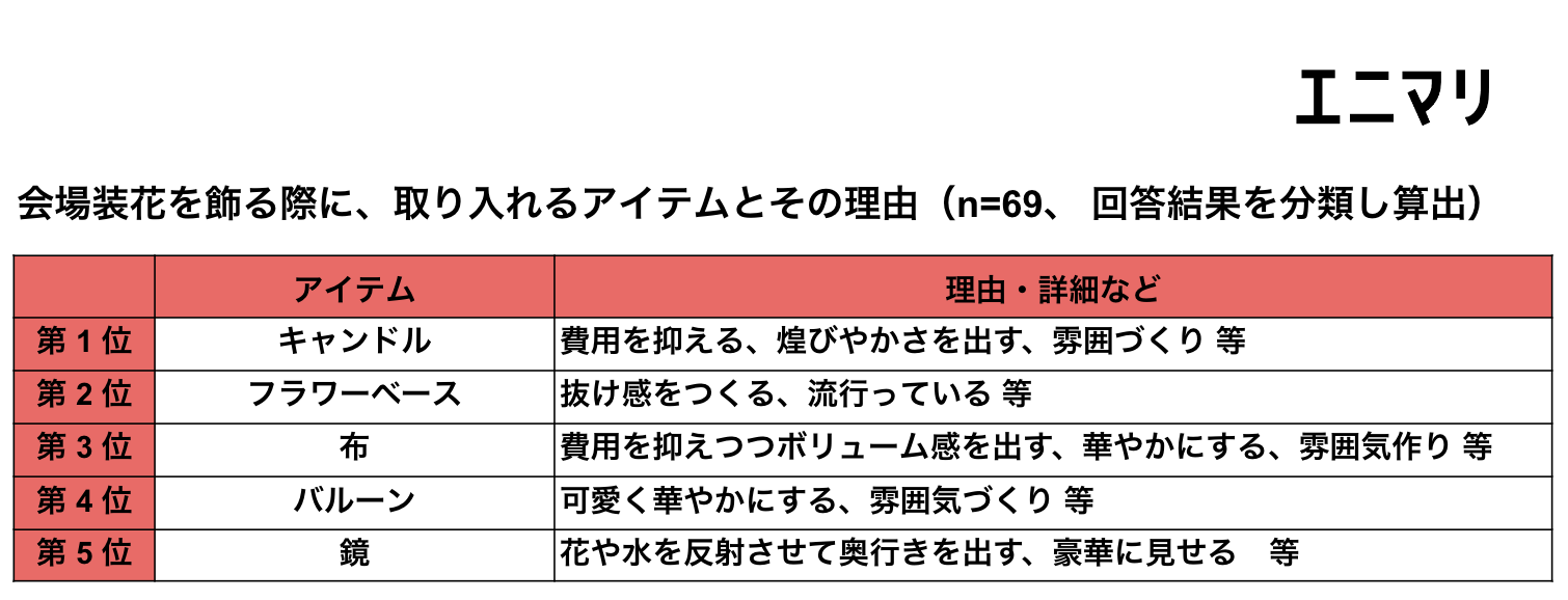 <会場装花に関する調査 サマリ>