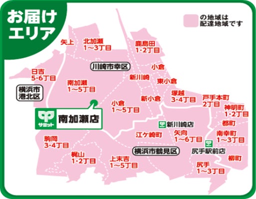 ●お届けエリア(川崎市幸区、横浜市鶴見区、港北区の以下の地域)