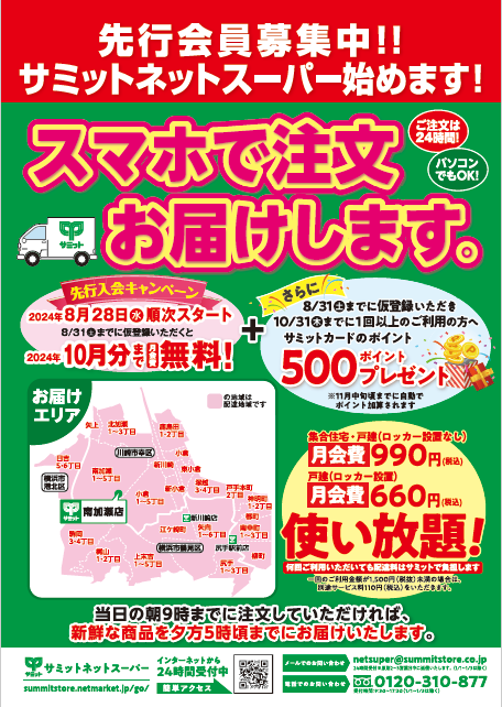 「サミット」のお店からお届けします!「南加瀬店」にてサミットネットスーパー開始先行会員募集中