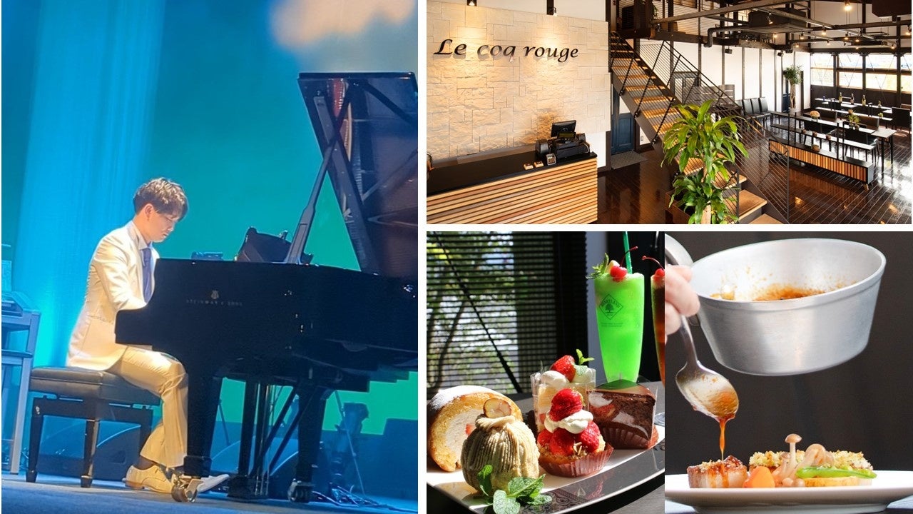 藤井空氏は里庄町出身で、幼い頃からピアノ、エレクトーン、トランペットに親しむ。そんな藤井空氏の里庄町を盛り上げたいという強い想いから、今回のふるさと納税限定コラボライブが実現しました。ライブが開催されるのは里庄町浜中にあるフレンチカフェ「ル コック ルージュ(Le coq rouge)」で、フレンチシェフが提供するこだわりのスイーツやフレンチコースの料理が堪能できます。ライブイベントは9月8日(金)9日(土)の2日間各2回の開催で、ランチやアフタヌーンティー、ディナーなどを楽しみながらこの日のために特別に店内に設置したグランドピアノで藤井空氏が奏でる多彩な旋律の生演奏等を聴くことができる各回20組限定のふるさと納税寄附者のみを対象としたプレミアムイベントです。