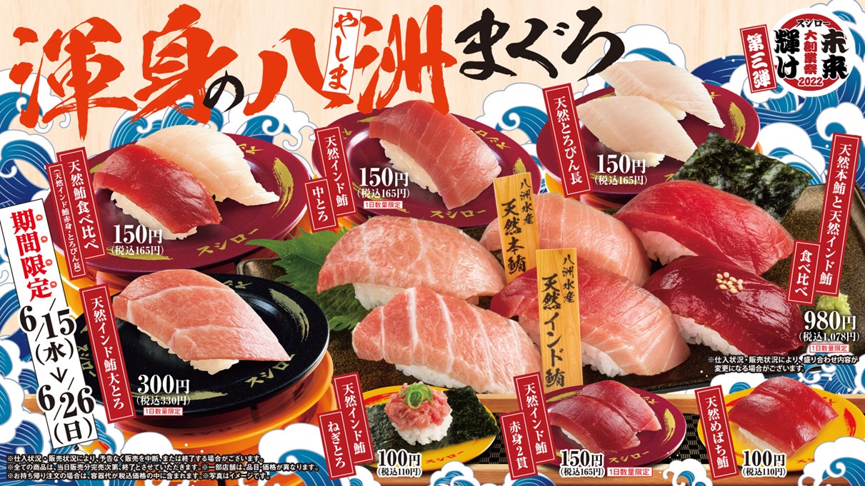 さらに、静岡県の老舗まぐろ問屋“八洲水産”のこだわり天然まぐろが登場!<本日6月15日(水)より、全国(※2)のスシローにて販売開始>