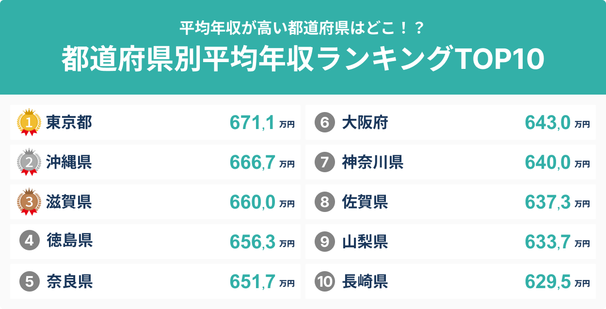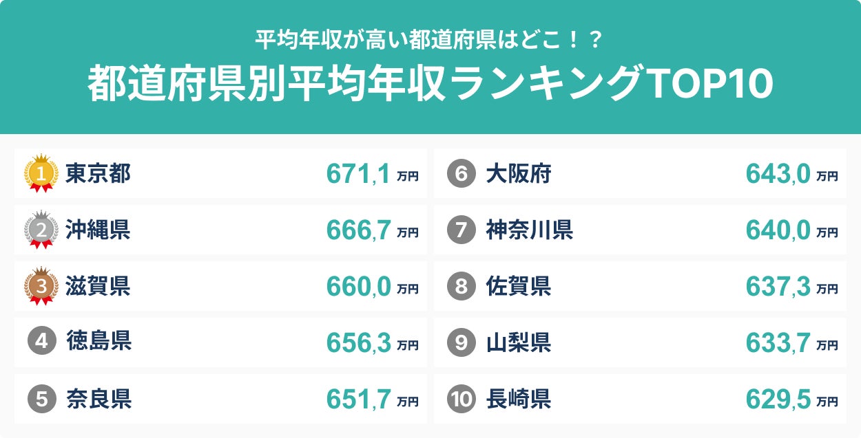 都道府県別平均年収ランキングTOP10について