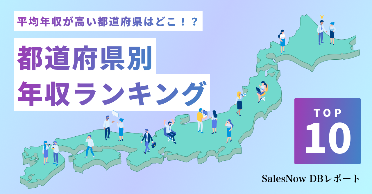 平均年収が高い都道府県はどこ!?都道府県別平均年収ランキングTOP10を発表!/SalesNow DBレポート
