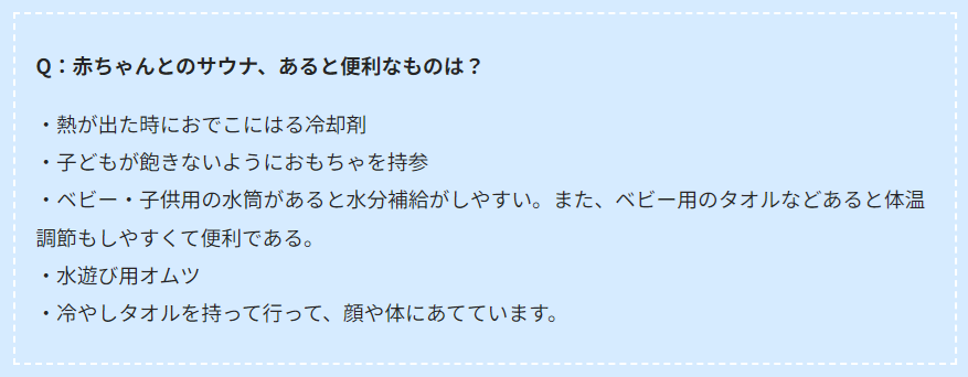 子ども(乳児)とのサウナに関する疑問や不安点