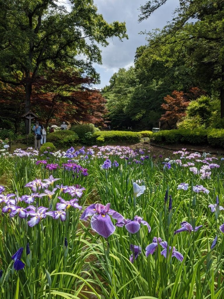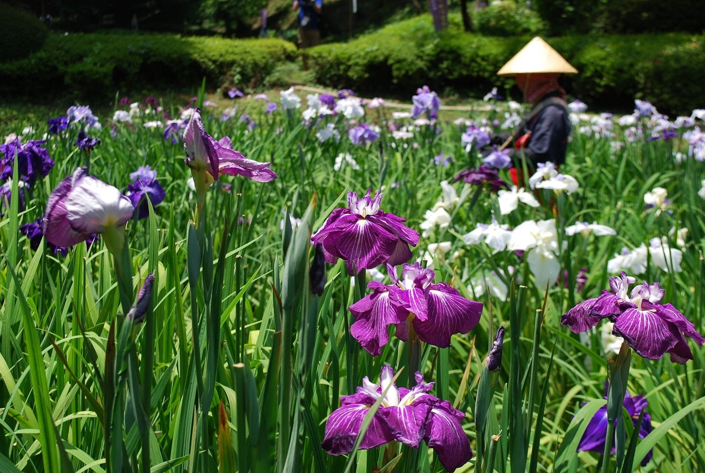 江戸系、肥後系、伊勢系など175品種、約2200株の花しょうぶが咲き誇ります。期間中には早乙女姿の花摘み娘が手入れをしています(花がなくなり次第終了)。見頃の時期は、6月上旬から中旬頃です。