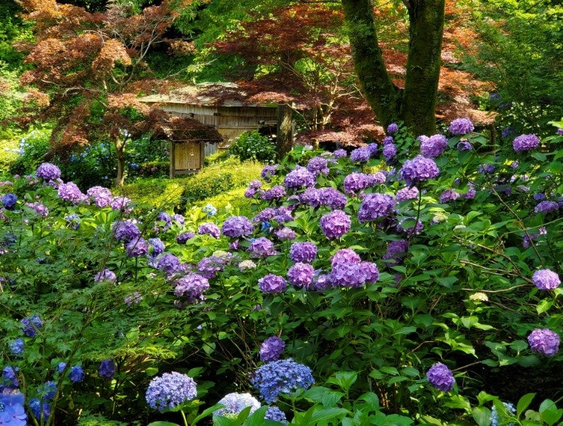 17品種、約5000株のあじさいが咲き誇るえびね苑を部分開苑します。入園は無料です。