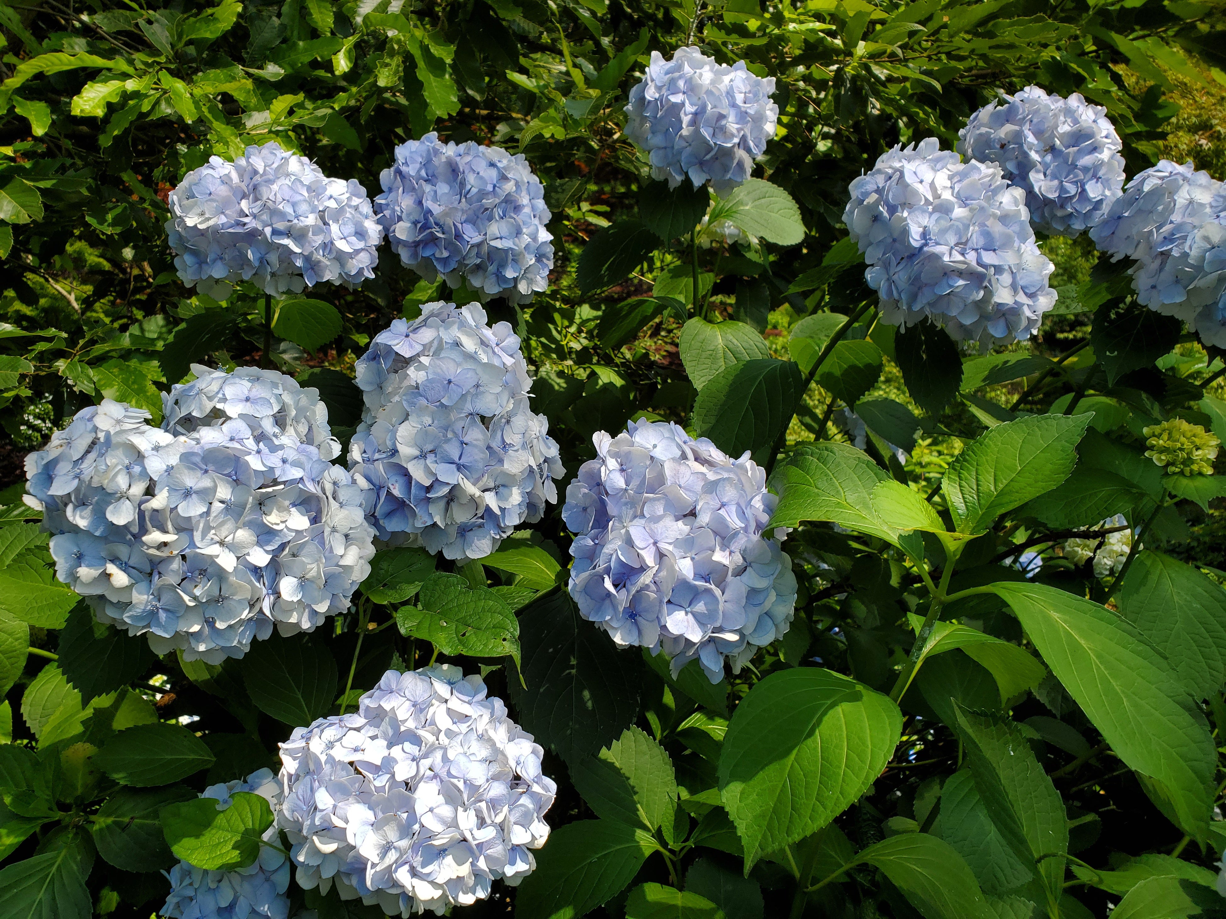 42品種、約1000株のガクアジサイ、西洋アジサイなどが咲き誇ります。見頃の時期は、6月中旬から下旬頃です。