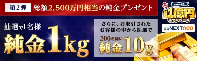 第2弾はなんと、エントリーするだけで「純金1kg」がもらえるチャンス…!