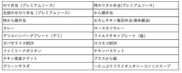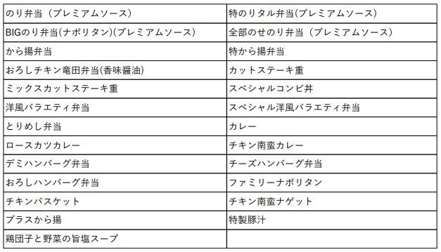 『のり弁当』や『から揚弁当』など合計31商品