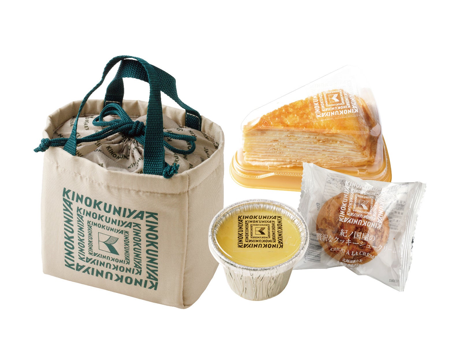 カスタードプリンなど3種類のスイーツを、人気のミニ保冷バッグにセットしました。