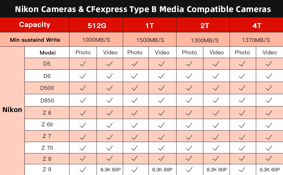 Pergear CFexpress TypeBメモリーカード第2世代は最大読み出し速度1780MB/秒*、最低継続書込速度1500MB/秒*を実現するとともに、Nikon Z8/Z9機種を新しく対応しました。
