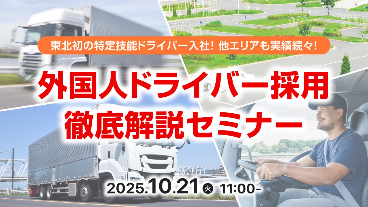 よりオンラインセミナー『東北初の特定技能ドライバー入社!他エリアも実績続々!外国人ドライバー採用 徹底解説セミナー』を開催いたします。