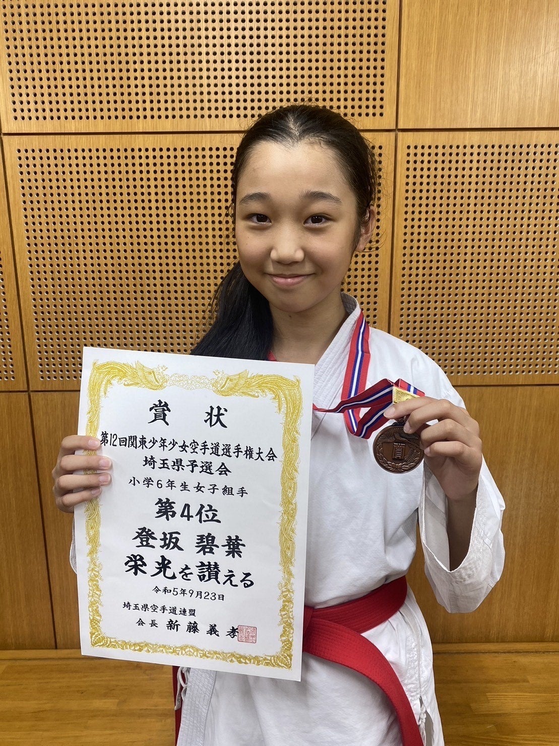 「第12回笹川杯関東少年少女空手道選手権大会」への出場は、登坂碧葉選手が所属している戸田市空手道連盟史上初のことで、上位6位に入賞すると、令和6年2月に北海道函館市で行われる第3回全日本少年少女空手道選抜大会への参加資格を得ることができます。