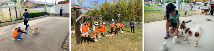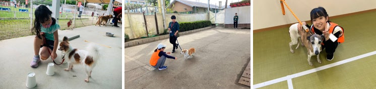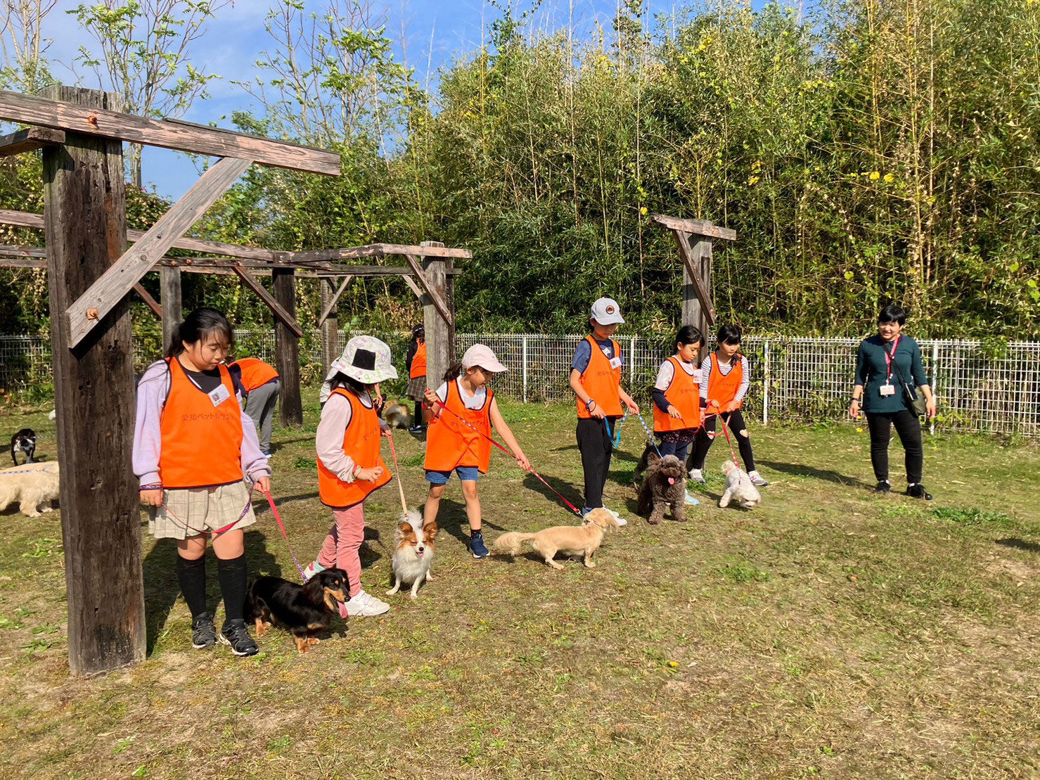 救助犬としてのトレーニングだけではなく、お散歩やふれあい、エサやりも行います。帰る日には寂しくて泣いてしまうお子様もいるほど、愛情を育むことができます。